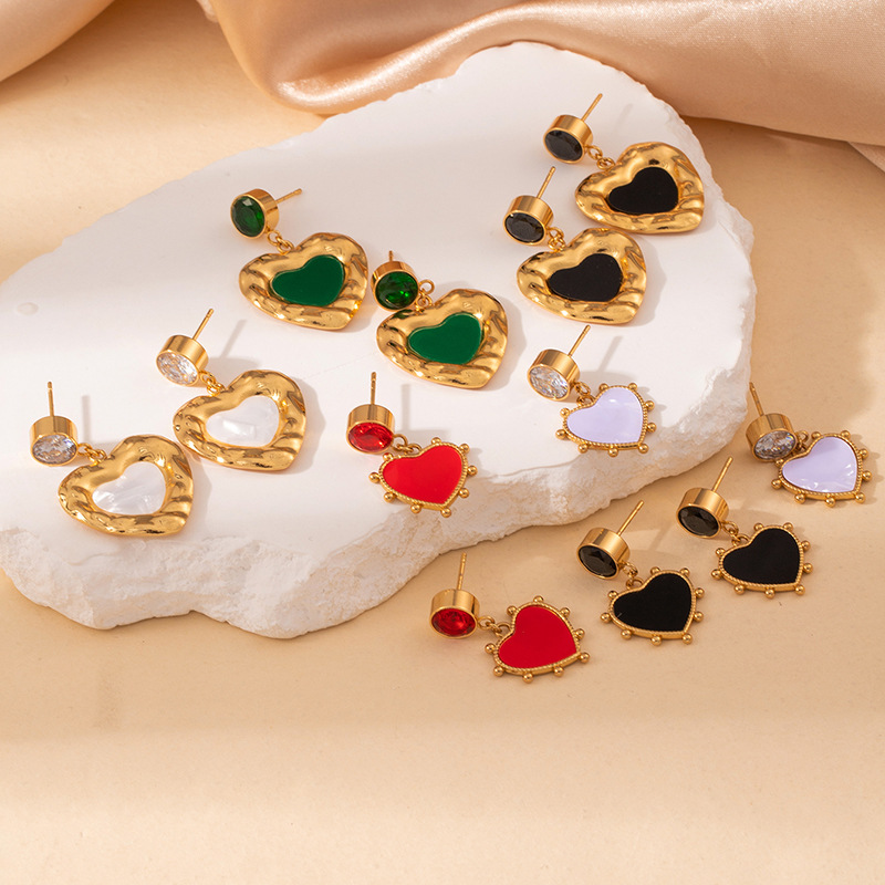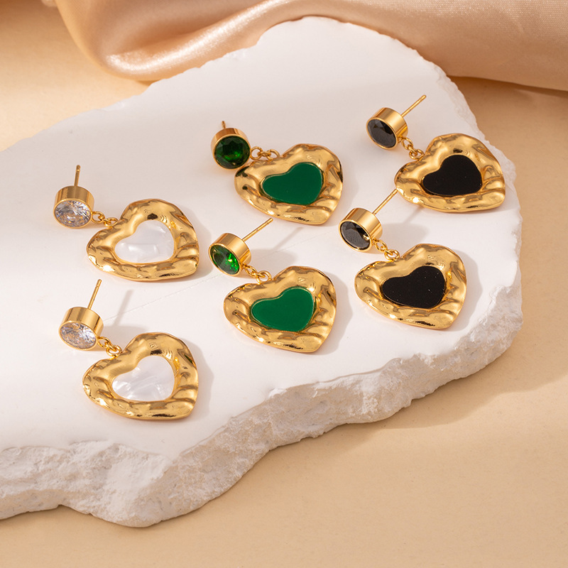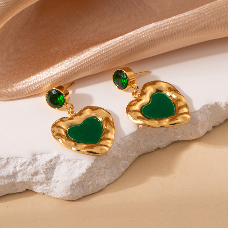 green zirconium love heart stud earrings 1995