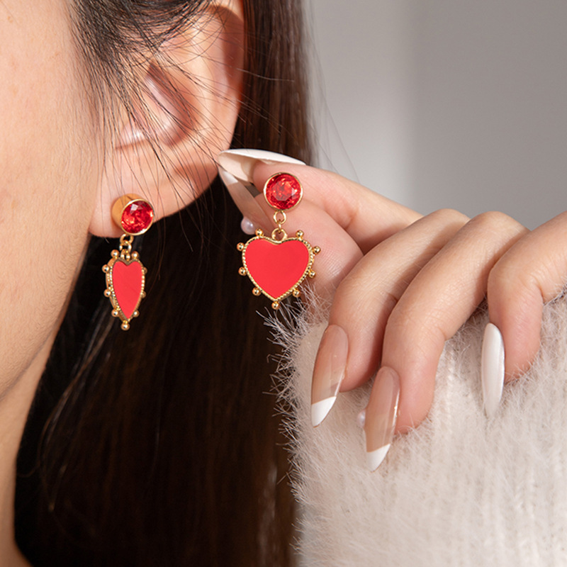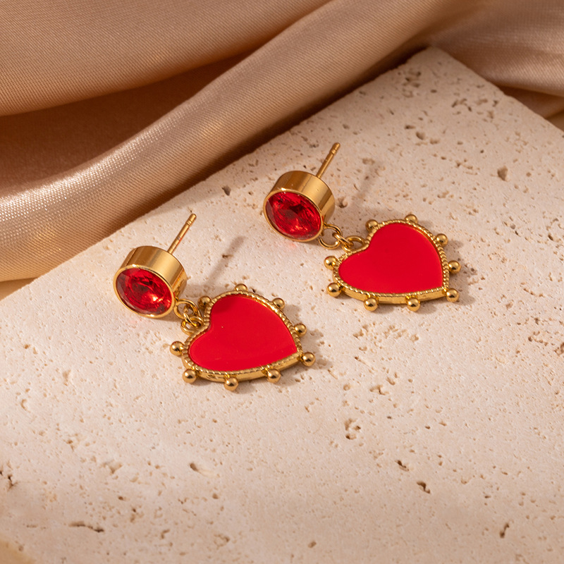 red zirconium wave point love heart stud earrings 1997