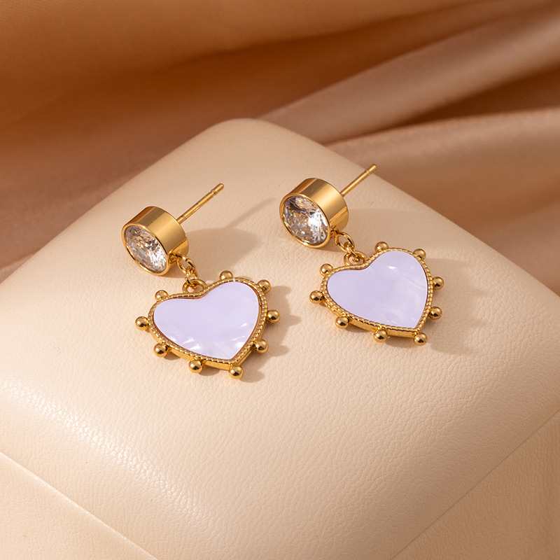 white zirconium love heart stud earrings 1994