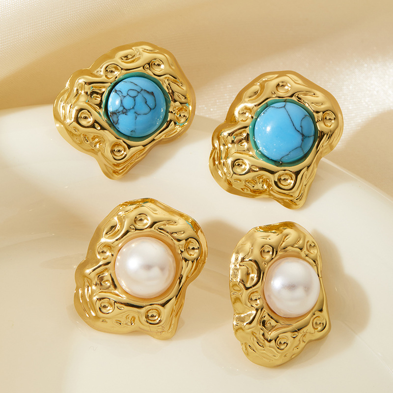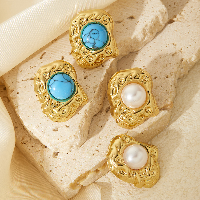 pearl spiral titanium steel earrings 0857