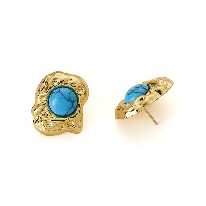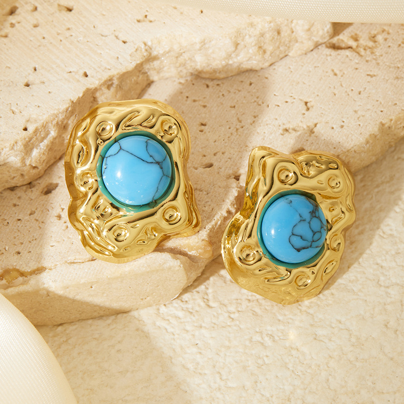 blue pattern spiral titanium steel earrings 0856