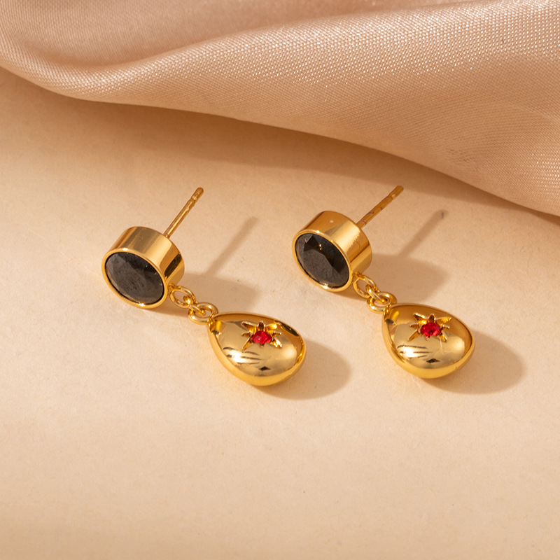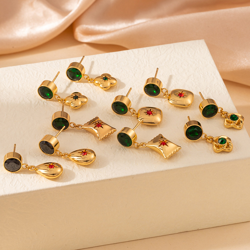 green zirconium water drop star ear studs 2020
