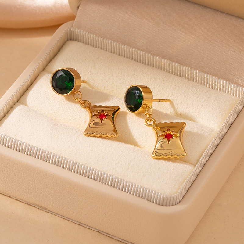 green zircon candy star ear studs 2019