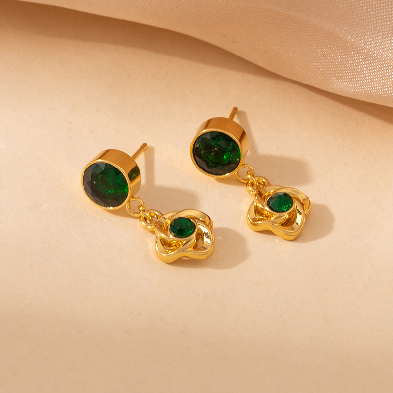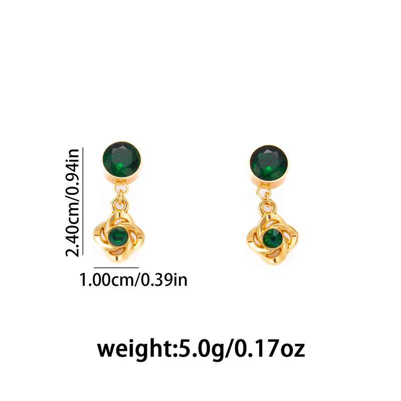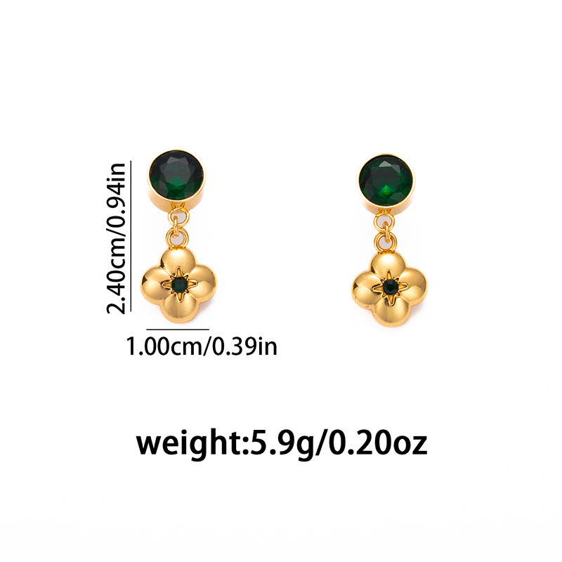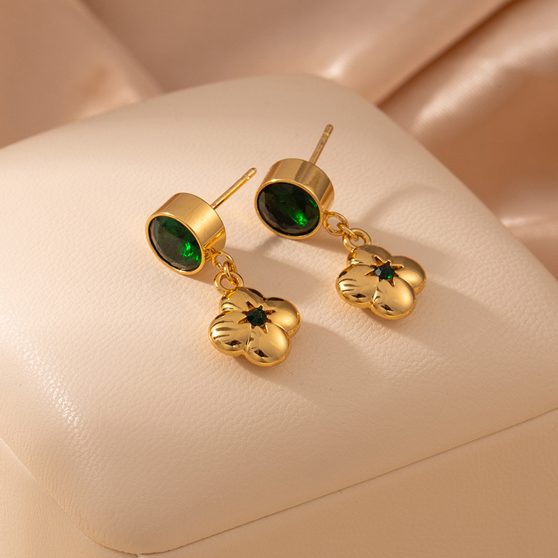 green zirconium rotating small flower ear studs 2021