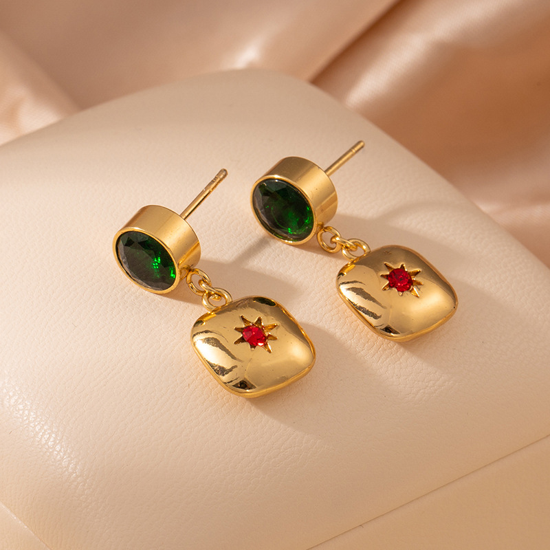 green zirconium diamond red star ear studs 2017