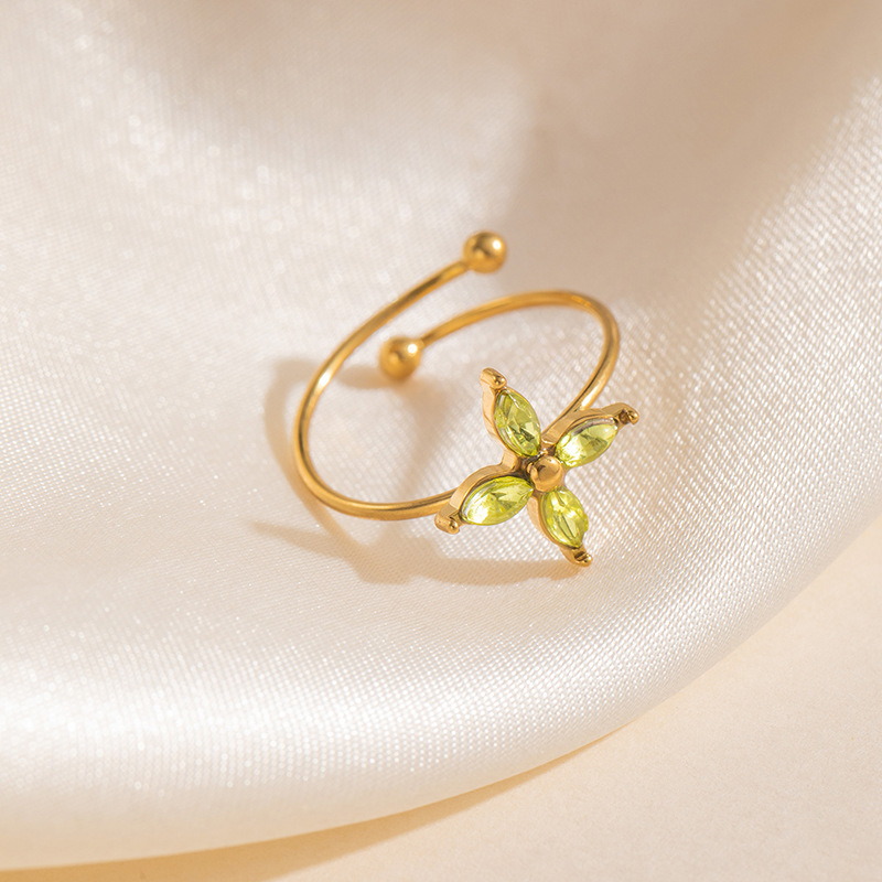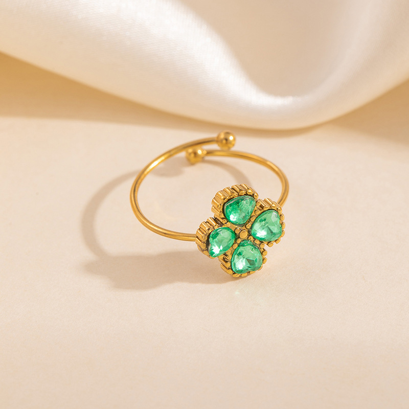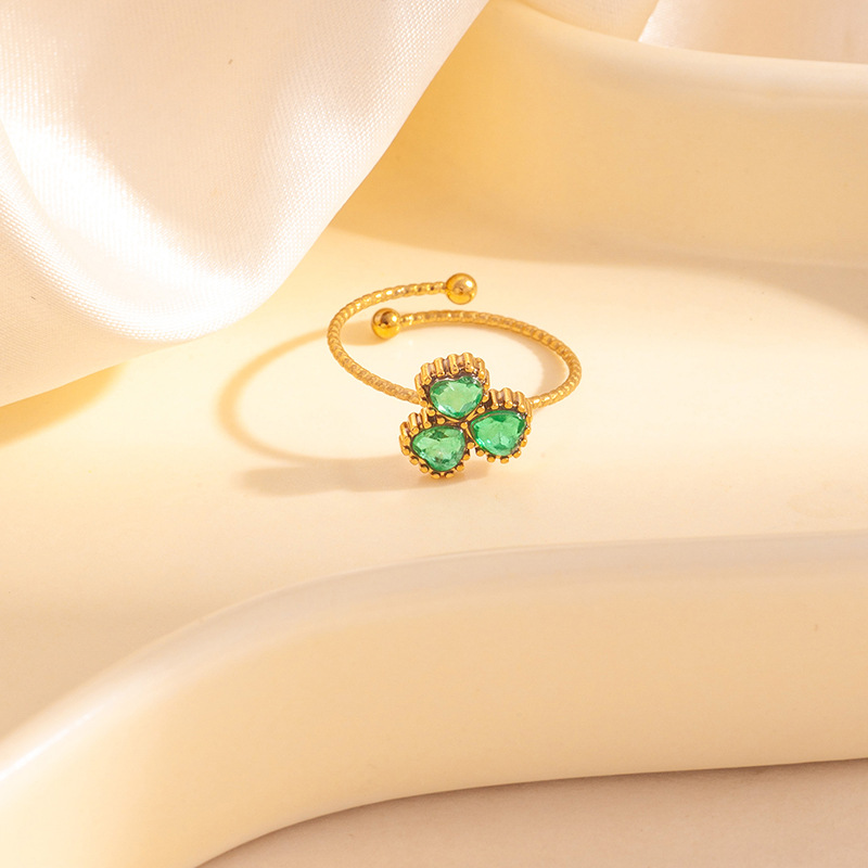 clover zircon ring-green 1711