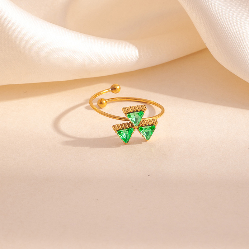 triangle stitching zircon ring-green 1703