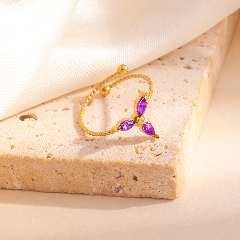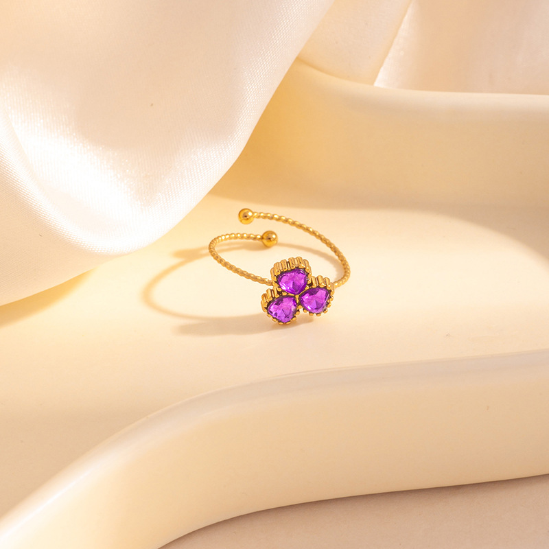 three-leaf zircon ring-purple 1706