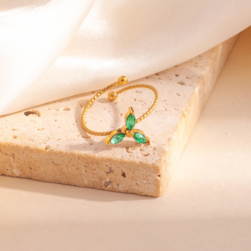 three-leaf zircon ring-green 1707