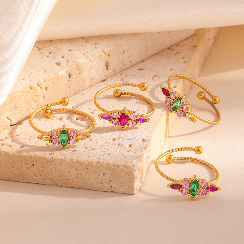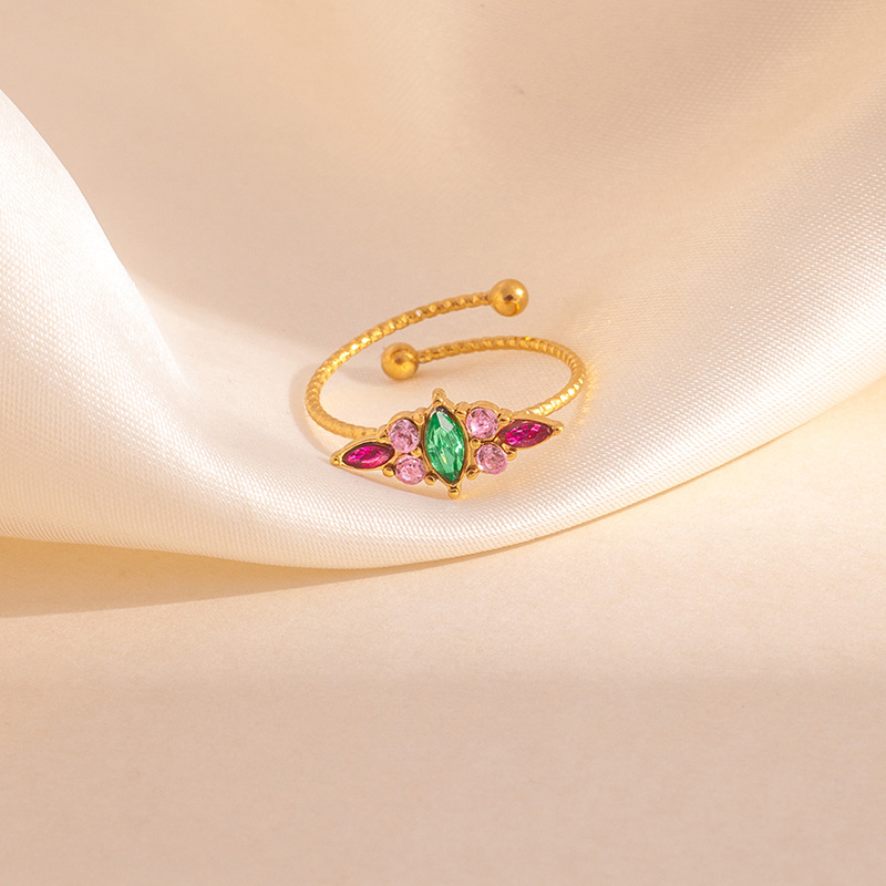 clover zircon ring-green pink 1693