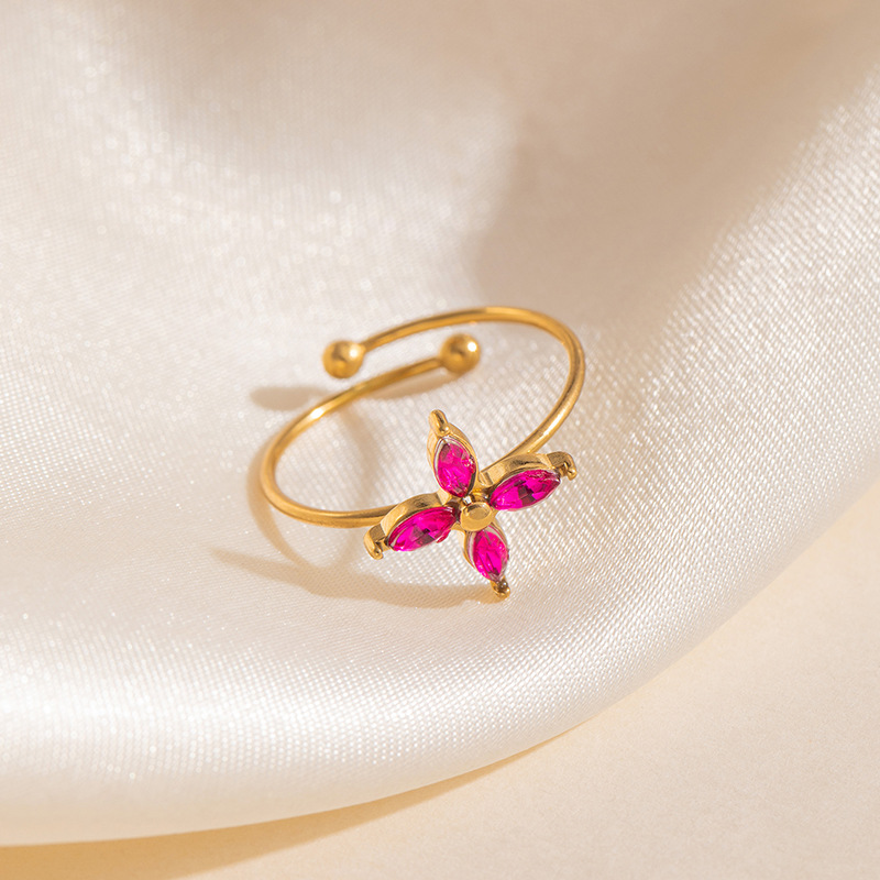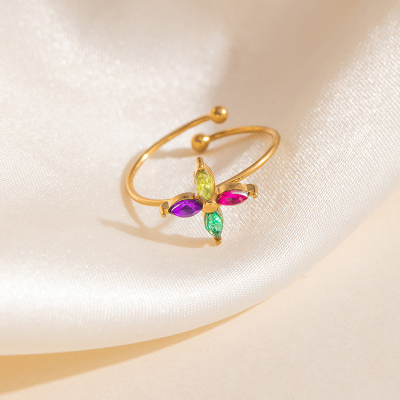 cruciate flower color zircon ring 1687