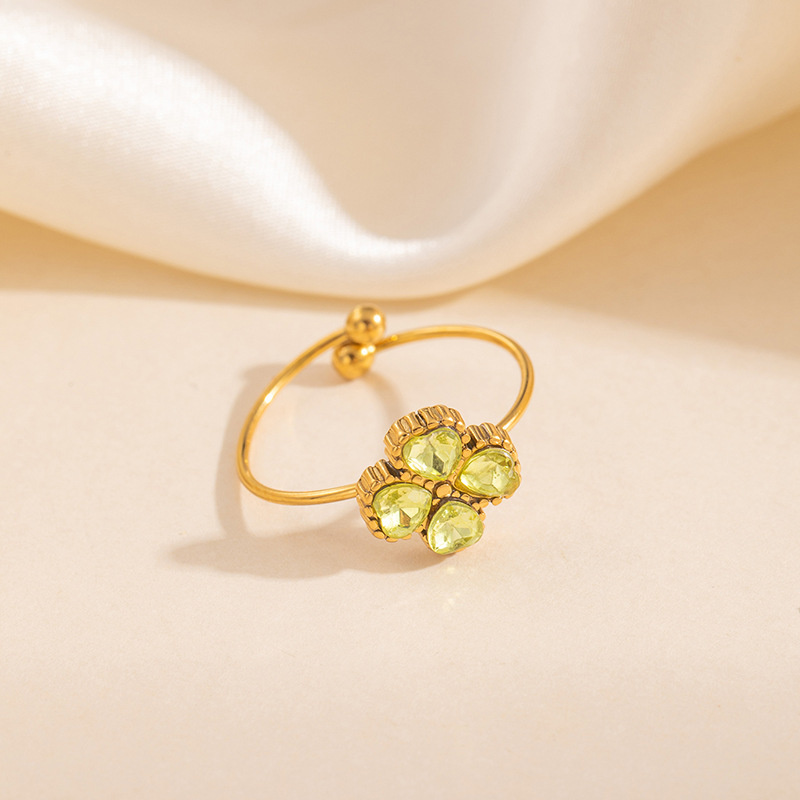 clover zircon ring-green 1692