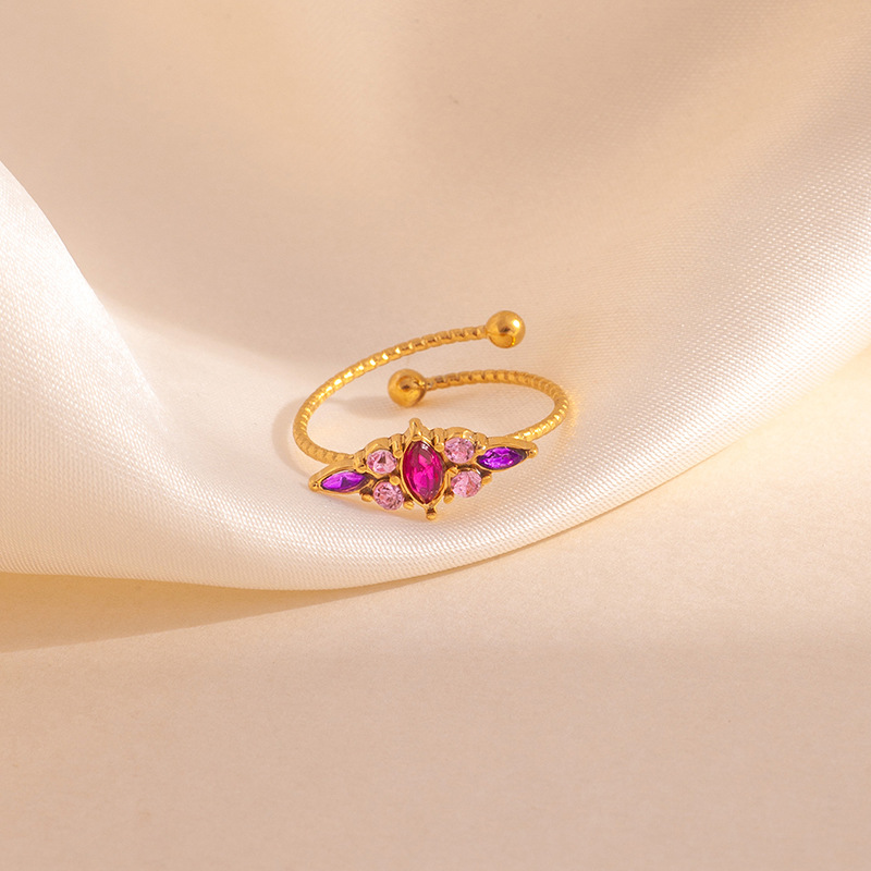 tapered color zirconium ring-pink purple 1698