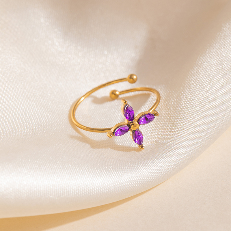 cruciate flower zircon ring-purple 1689