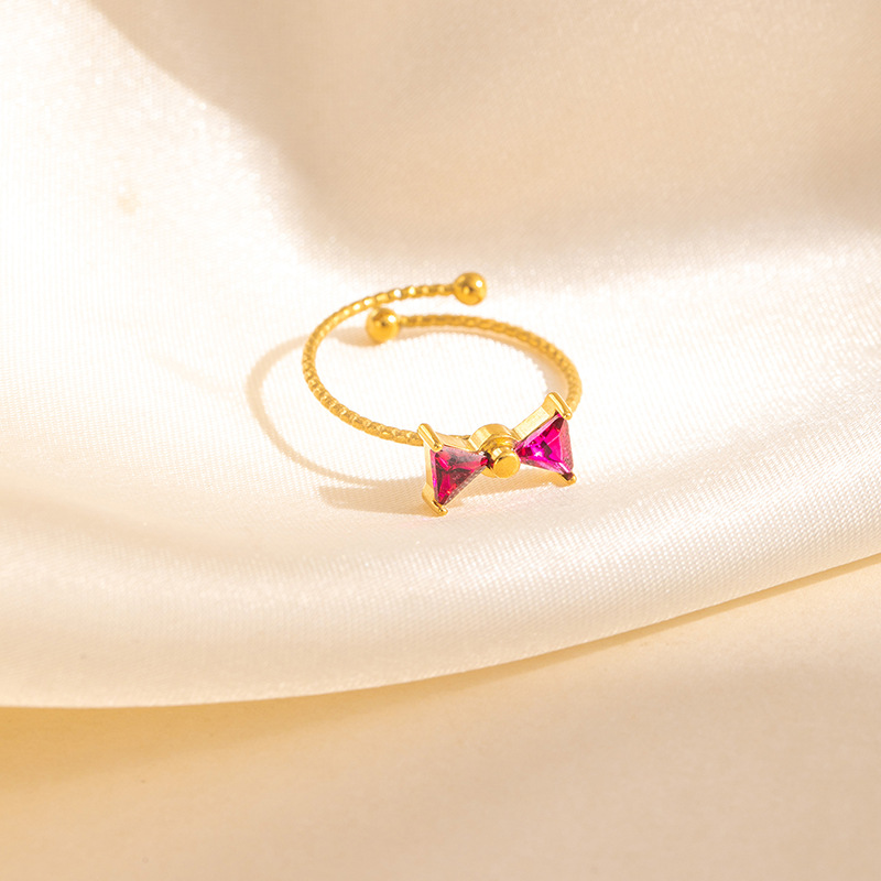 bow-knot zircon ring – pink 1684