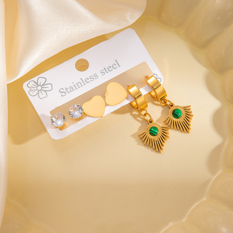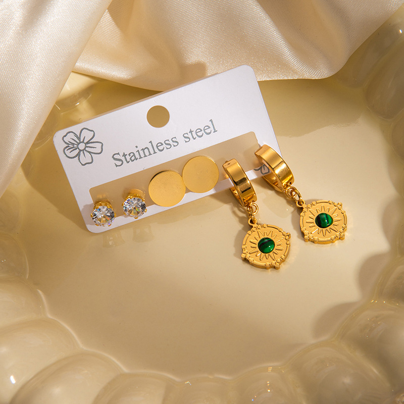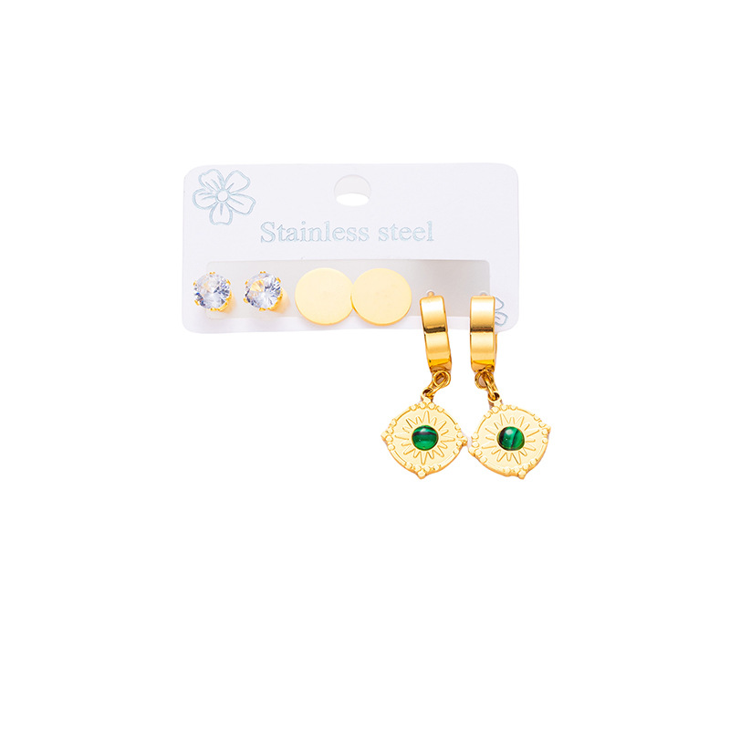 disc-shaped sun titanium steel earrings set 0741