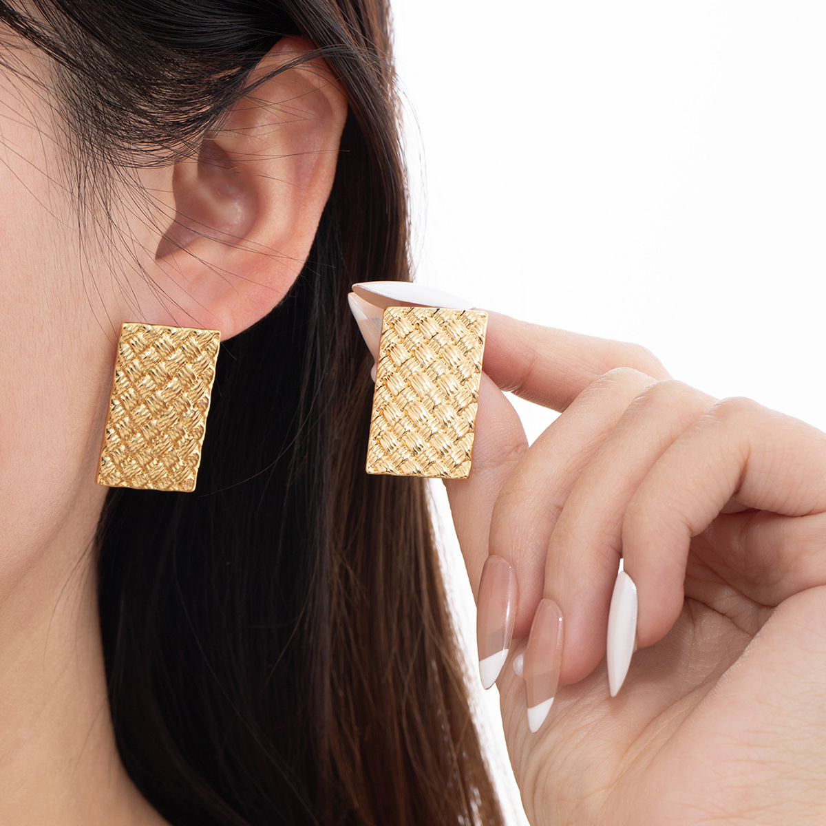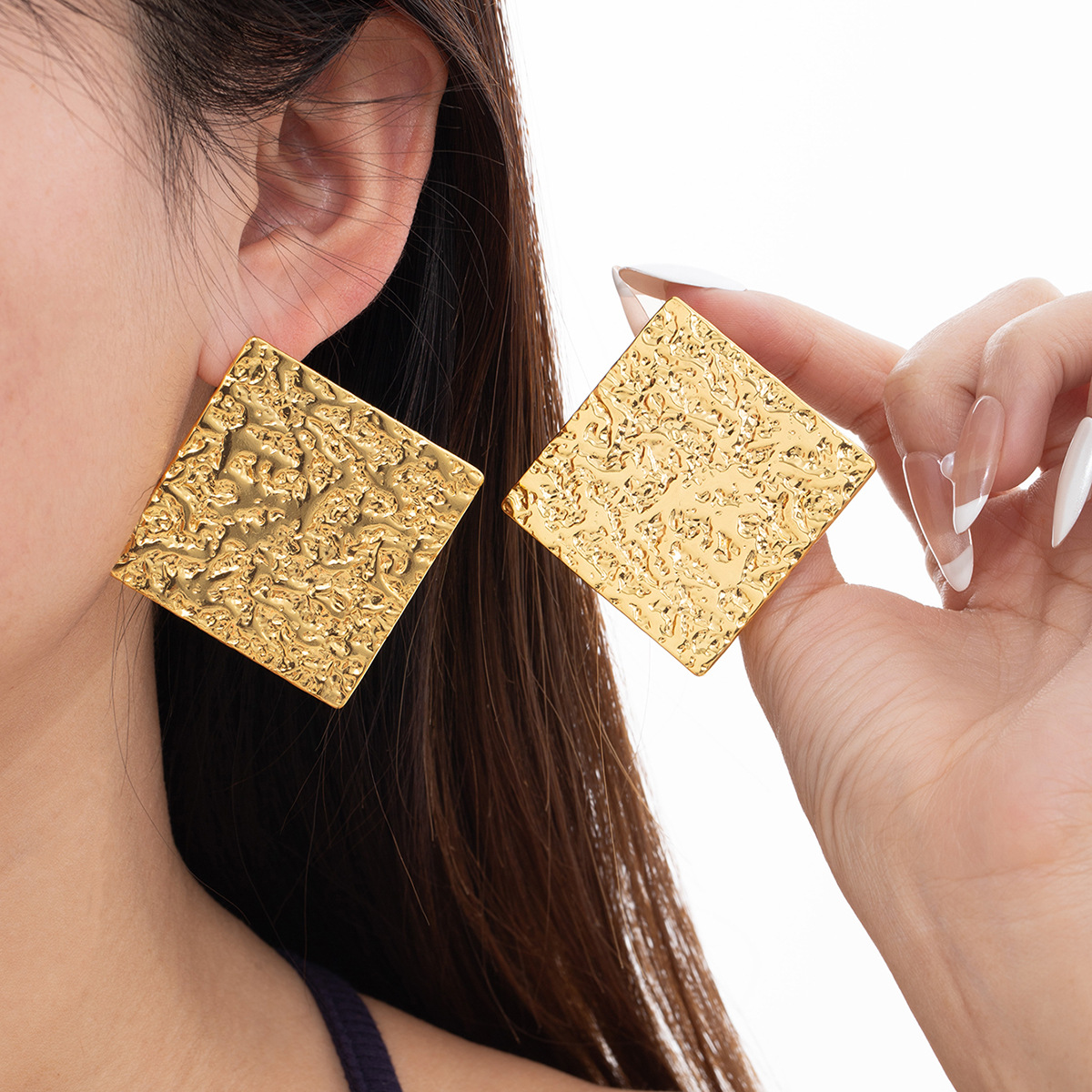 irregular texture square stud earrings 2132