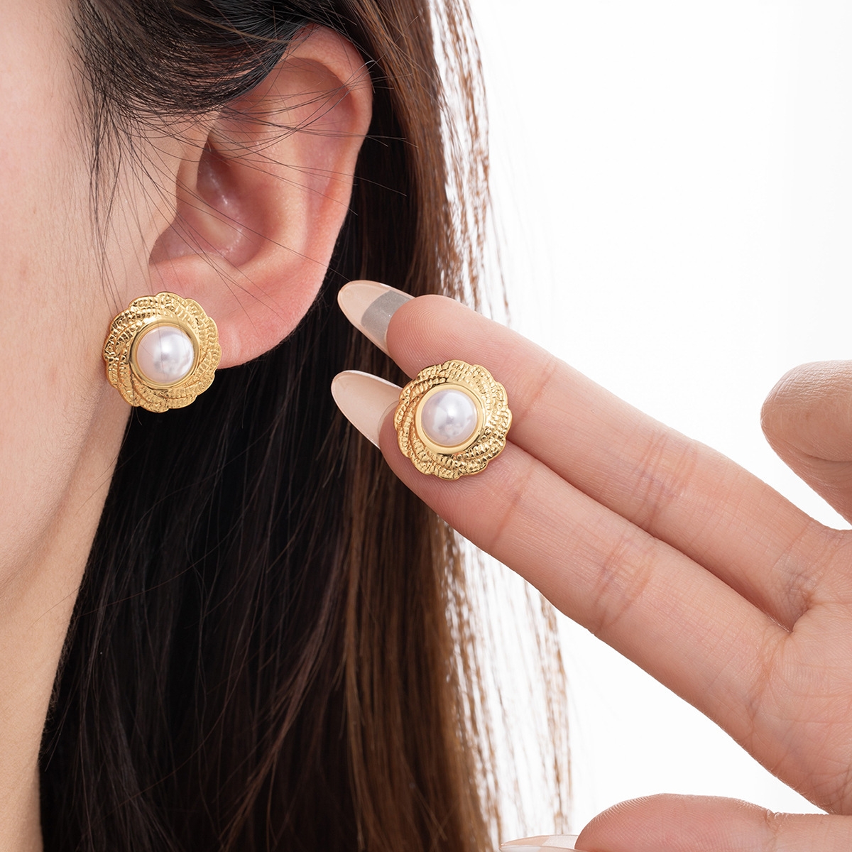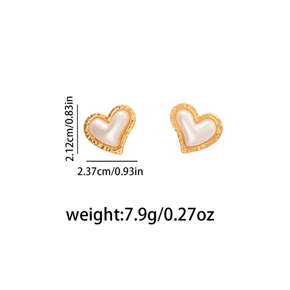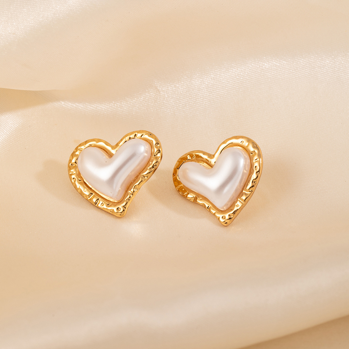 hammered pearl heart-shaped ear studs 2144