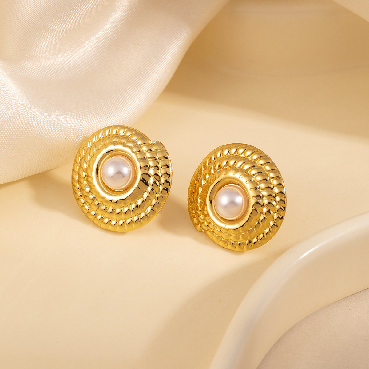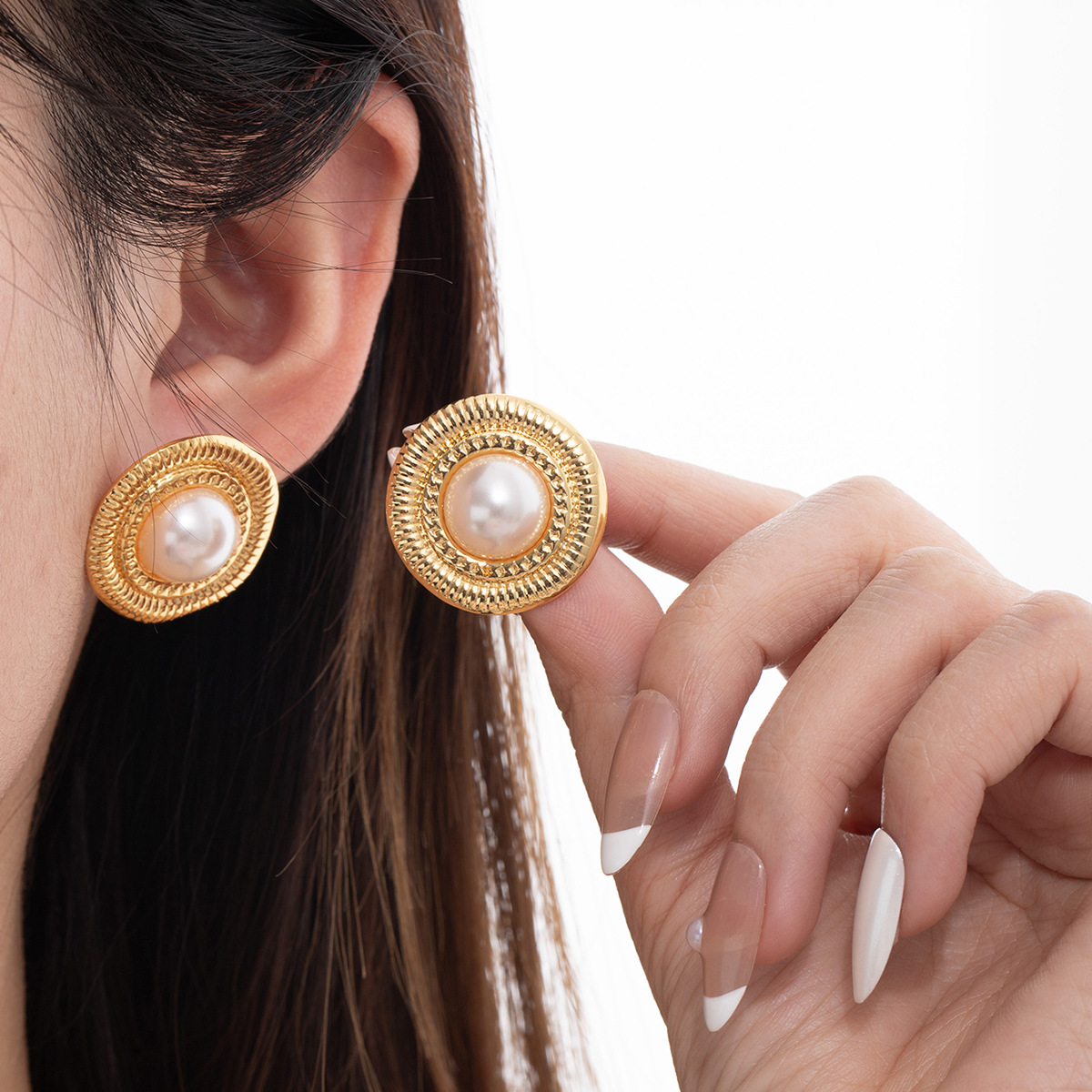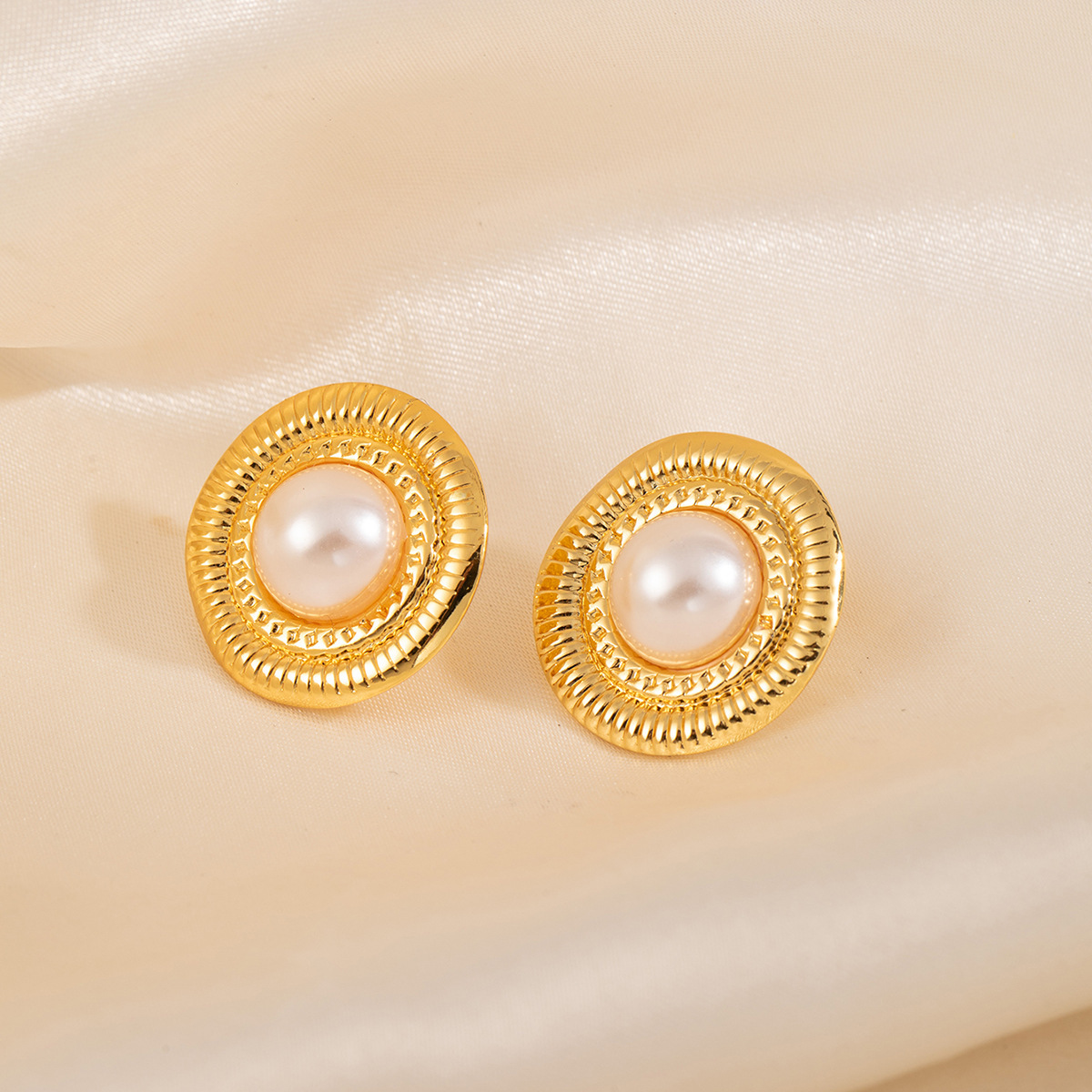 round striped pearl stud earrings 2143