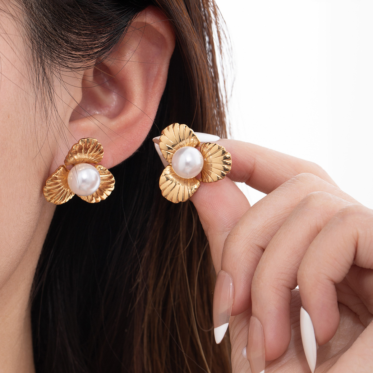 flower pearl stud earrings 2142