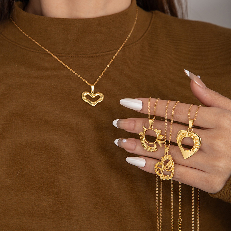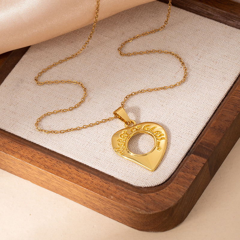 hollowed heart shape round necklace 0823