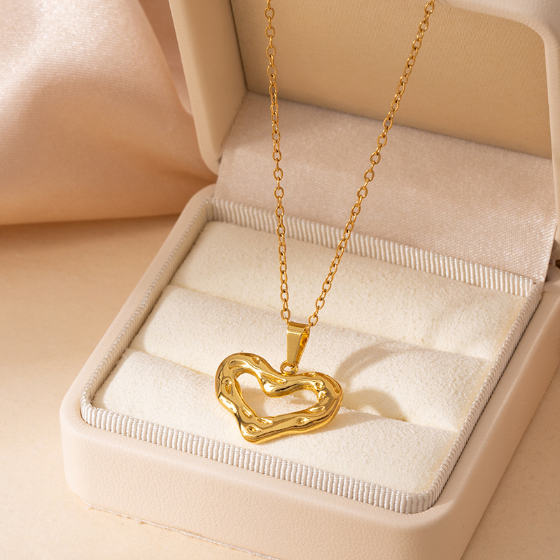 hammered hollow heart necklace 0824