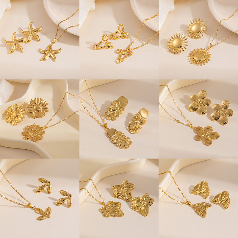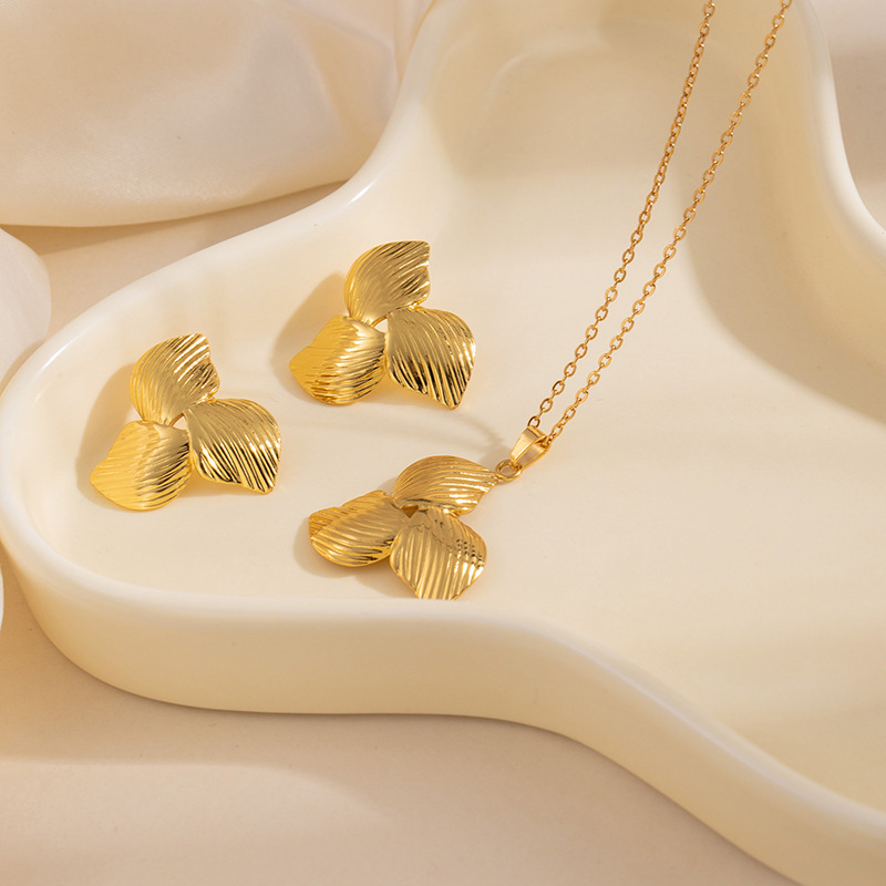 three-leaf patchwork earrings and necklace set tz92