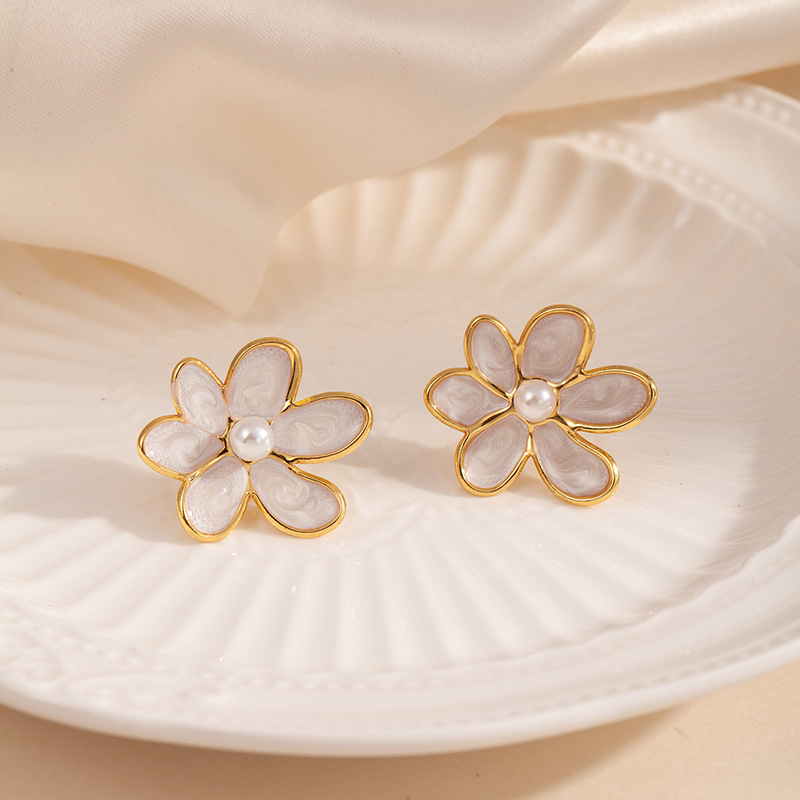 flower pearl stud earrings-white 1810