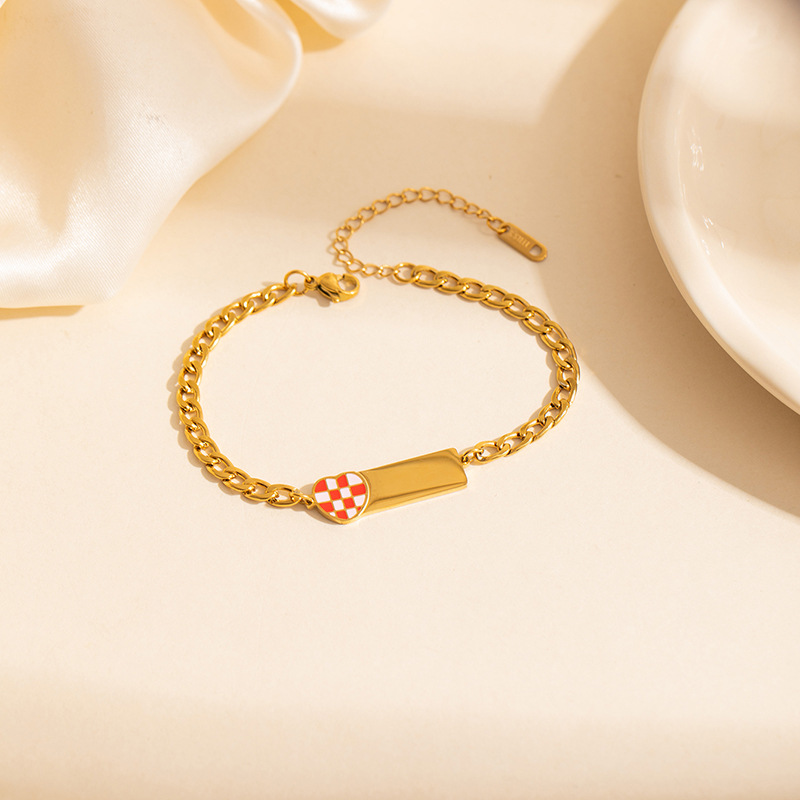 grid love heart square plate bracelet 0252