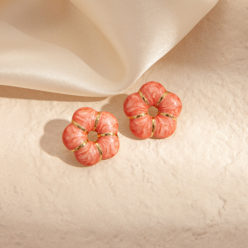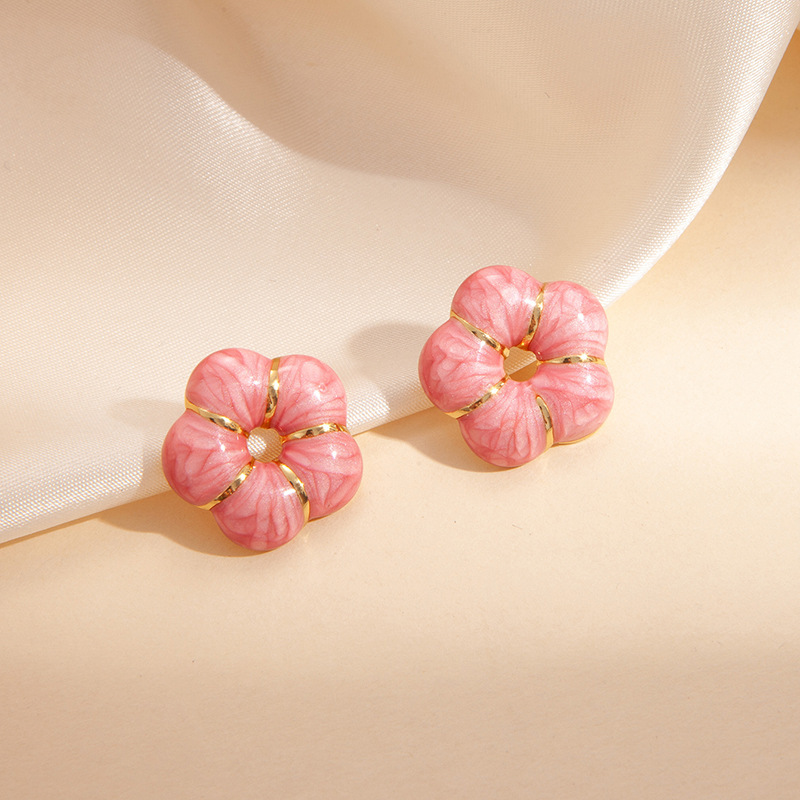 pink gold small flower ear studs 1583