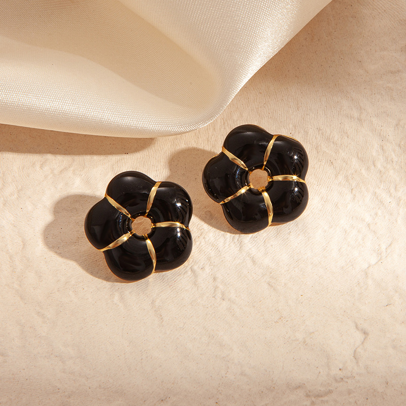 black gold small flower ear studs 1587