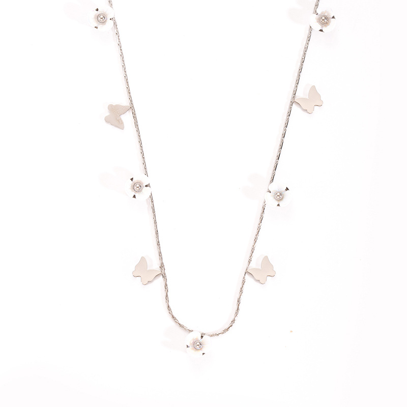 butterfly flower titanium steel necklace-steel color