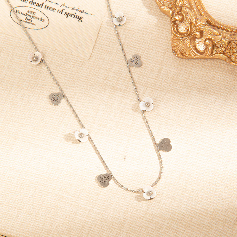 sunflower pearl titanium steel necklace-steel color