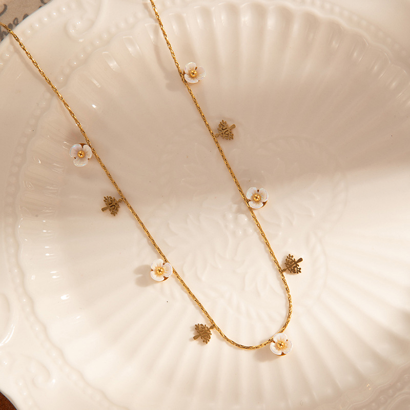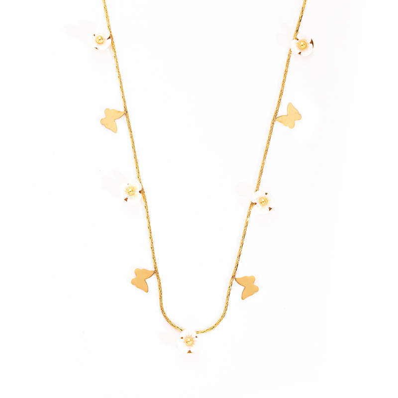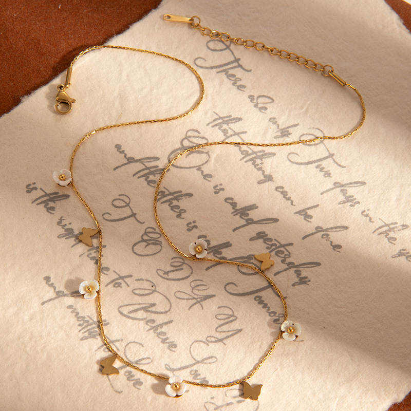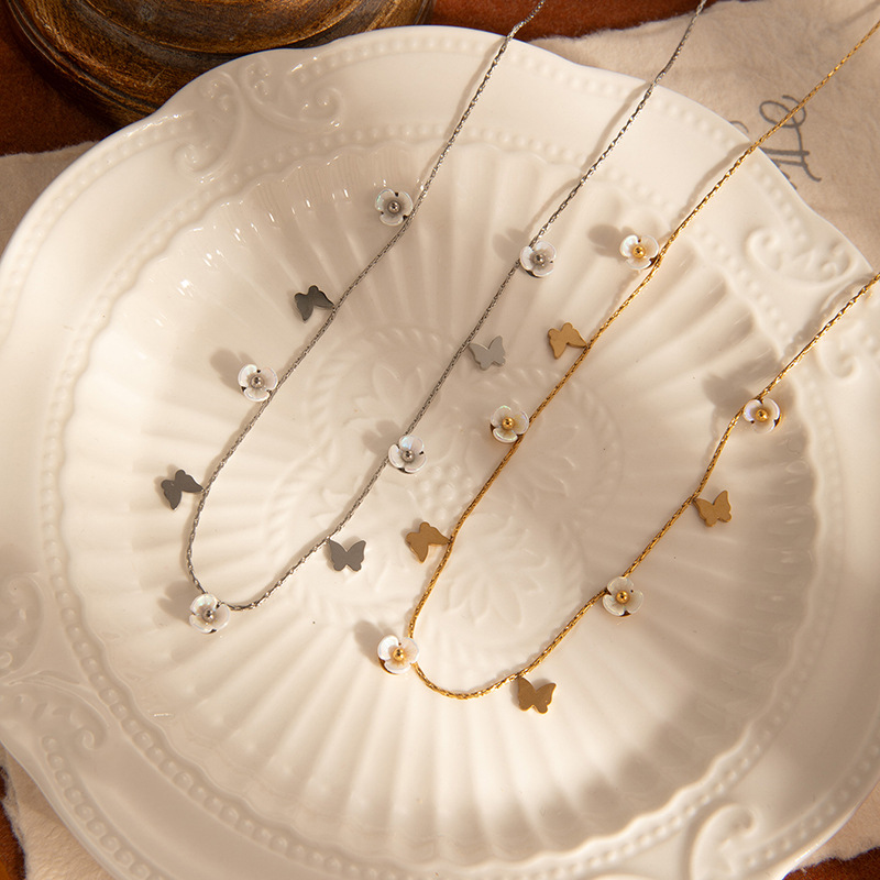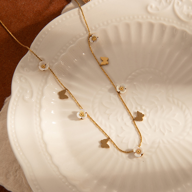 butterfly flower titanium steel necklace-gold