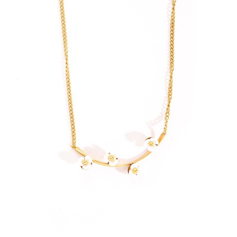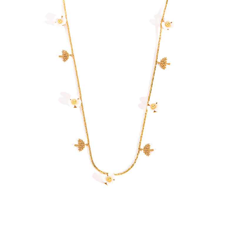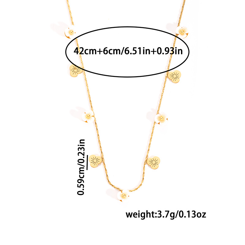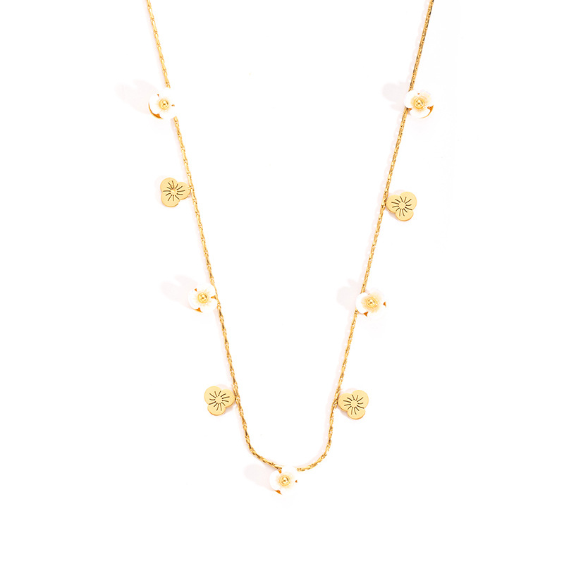 sunflower pearl titanium steel necklace-gold