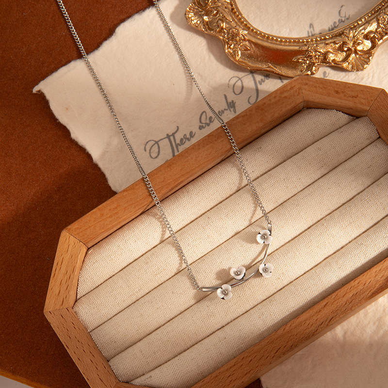 lucky tree flower titanium steel necklace-steel color
