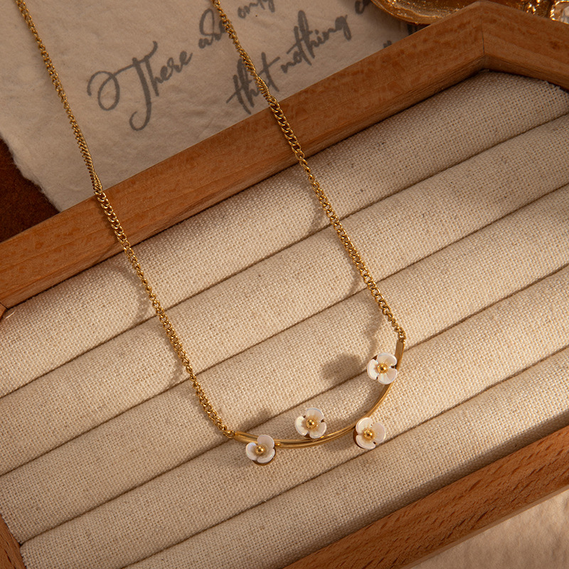 face flower titanium steel necklace-gold