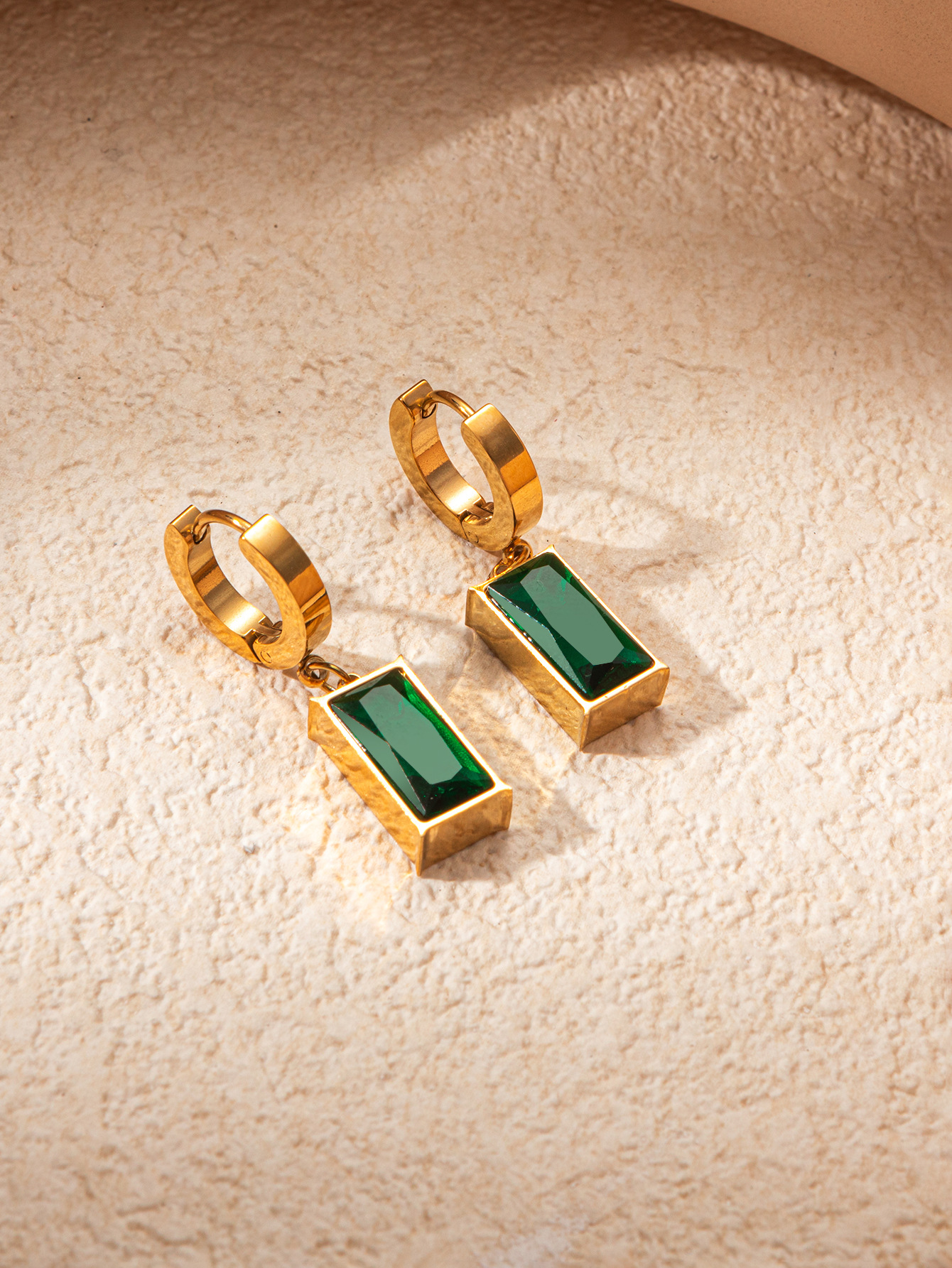 emerald square earrings