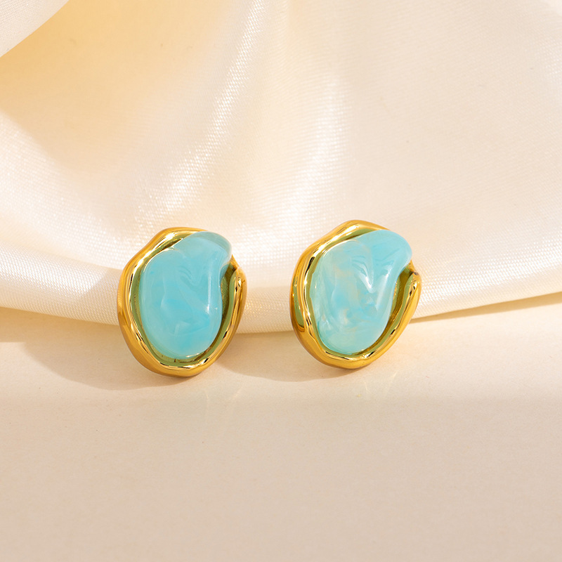 geometric blue stone disc stud earrings 1874