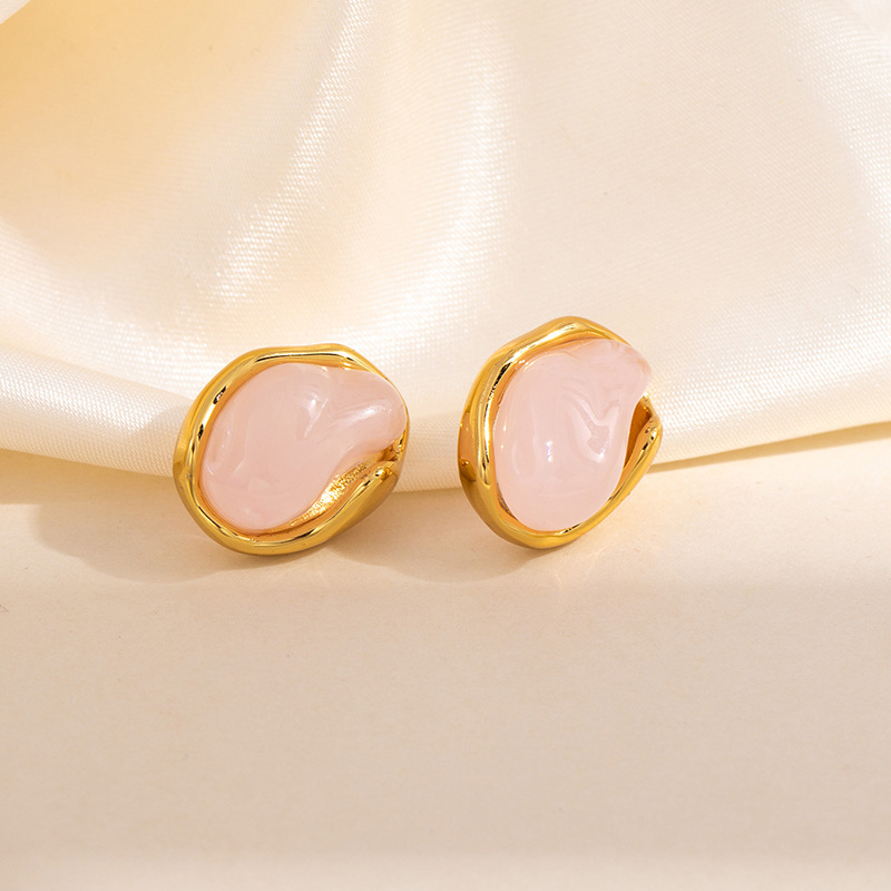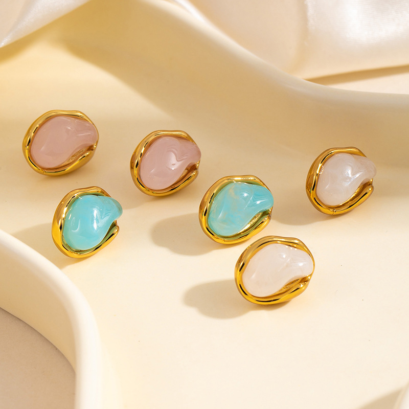 geometric powder stone disc stud earrings 1875