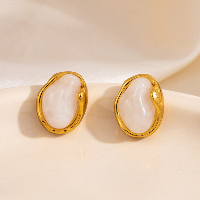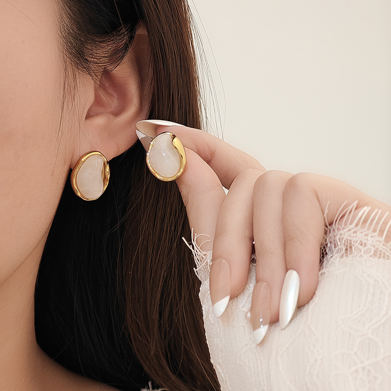 geometric white stone disc stud earrings 1876