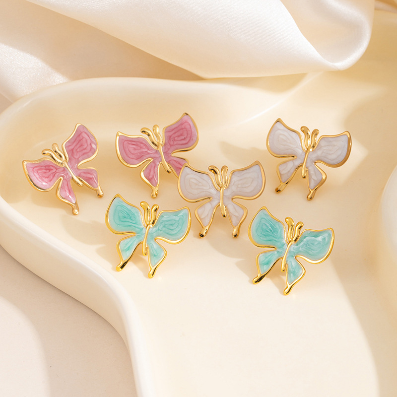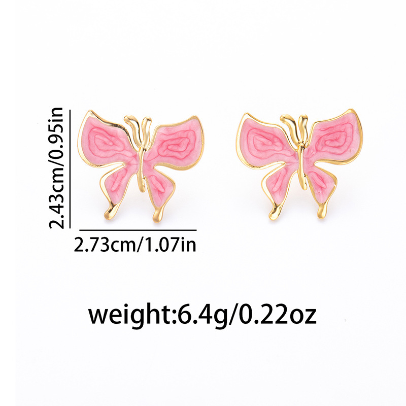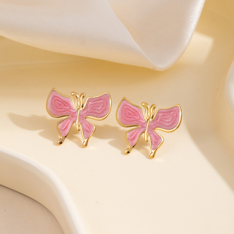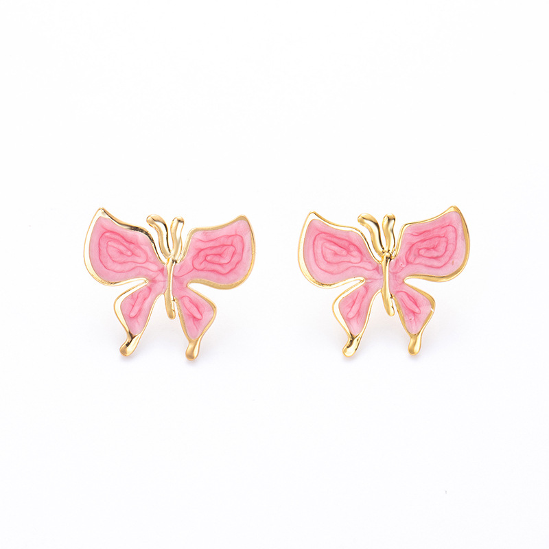 drip glazed pink butterfly studs 1910