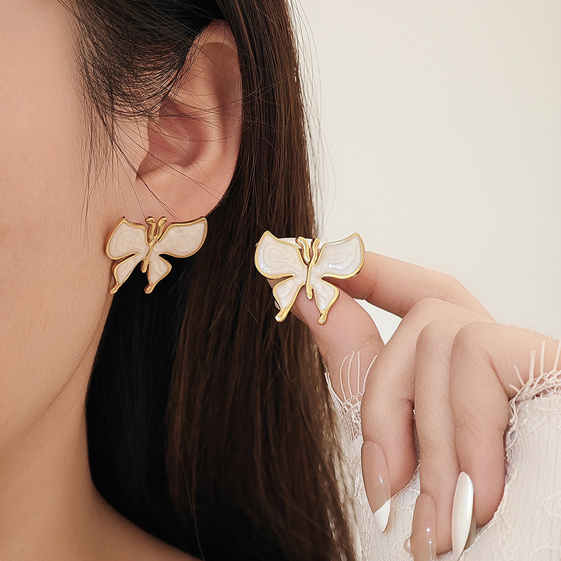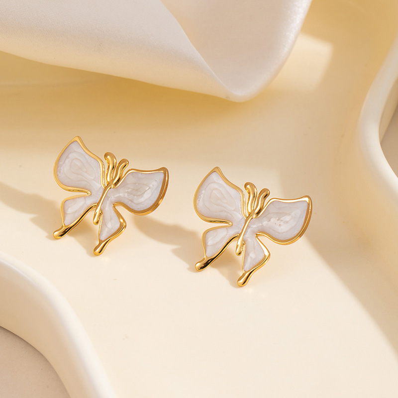 drip glazed white butterfly studs 1909