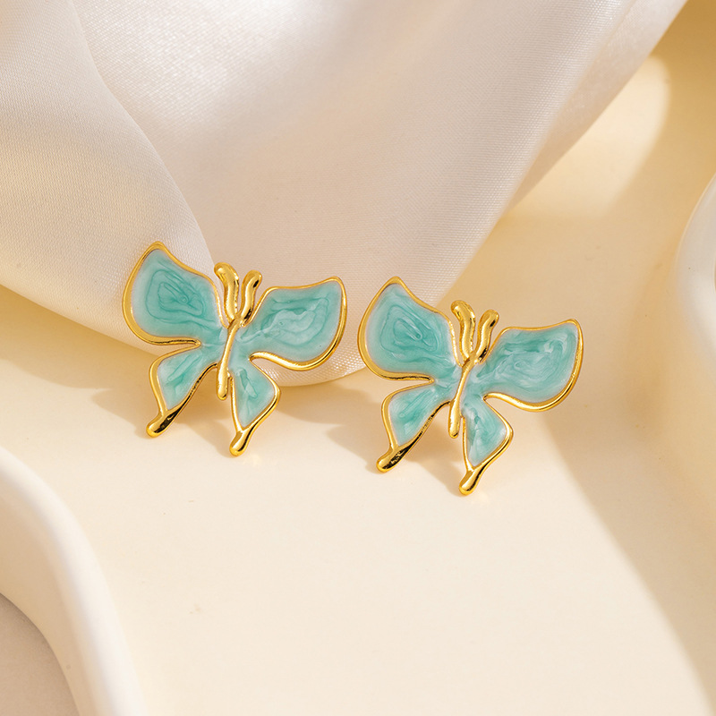 drip glazed blue butterfly studs 1911