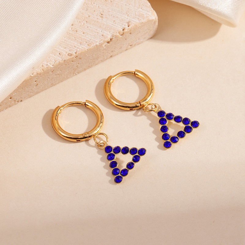 hollow triangle blue zirconium earrings 1781