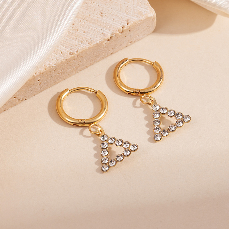 hollow triangle white zirconium earrings 1779