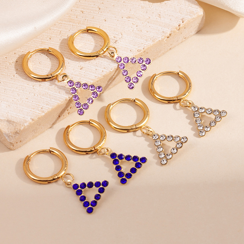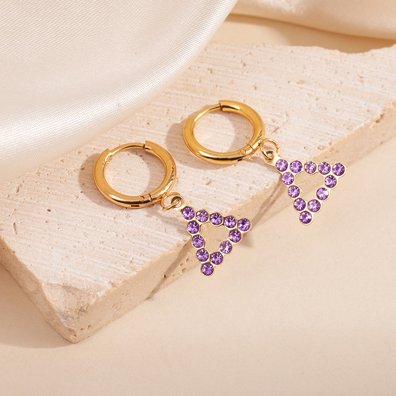 hollow triangle purple zirconium earrings 1780