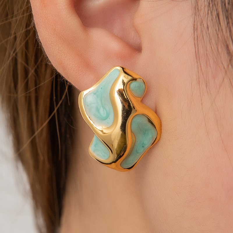 blue wave titanium steel earrings 0859