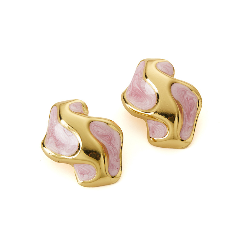 pink wave titanium steel earrings 0860