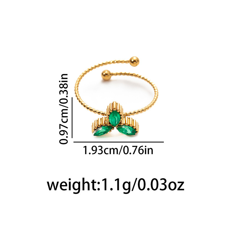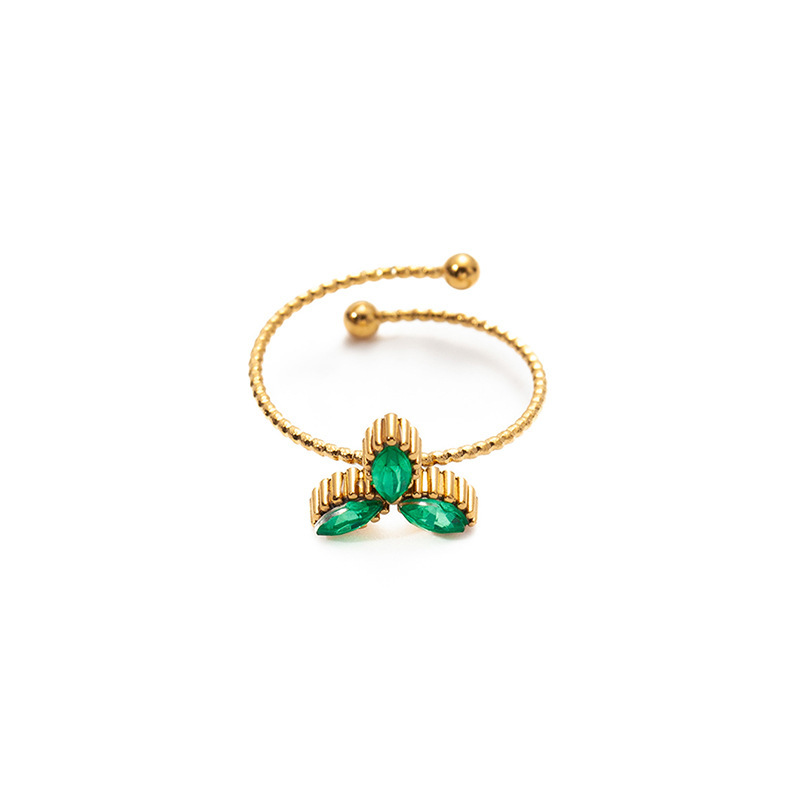 three-leaf zircon ring-green 1639